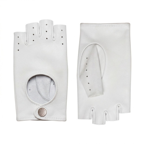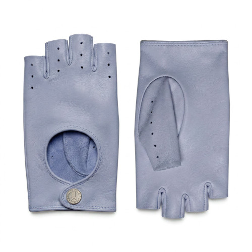 Women's fingerless gloves in lambskin and cotton crochet, with a snap enclosure.