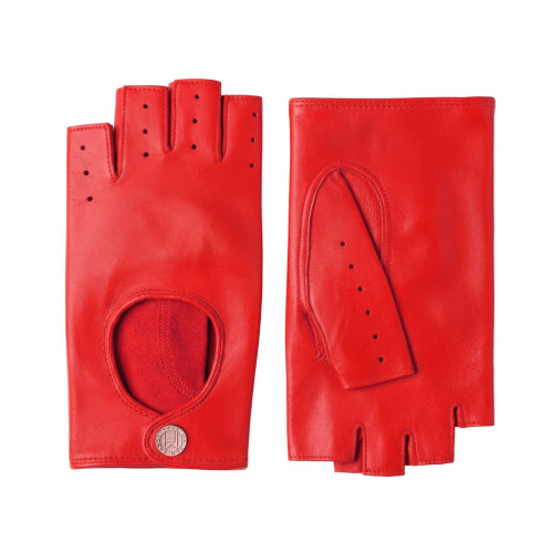 Women's fingerless gloves in 100% lambskin leather, with ring embroideries