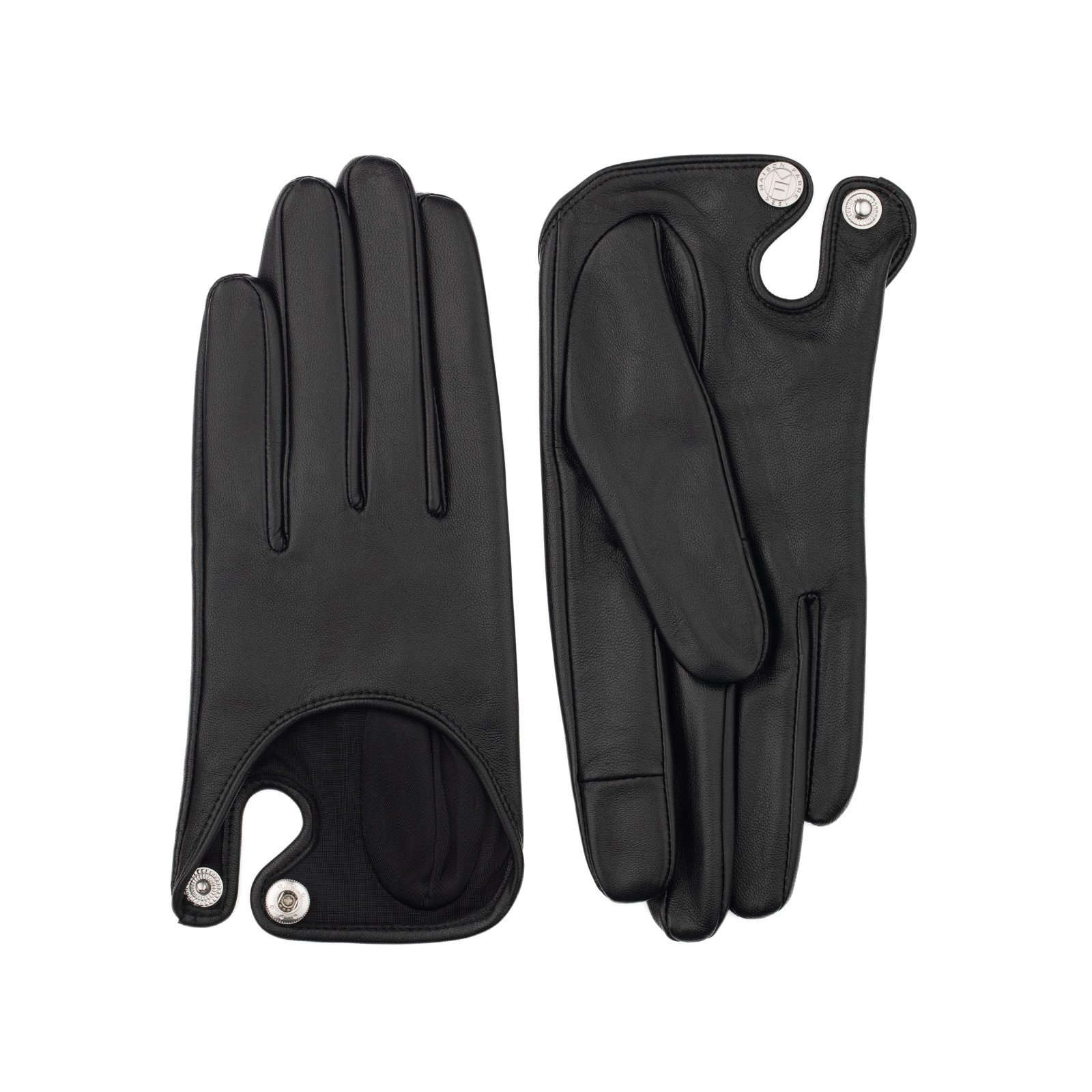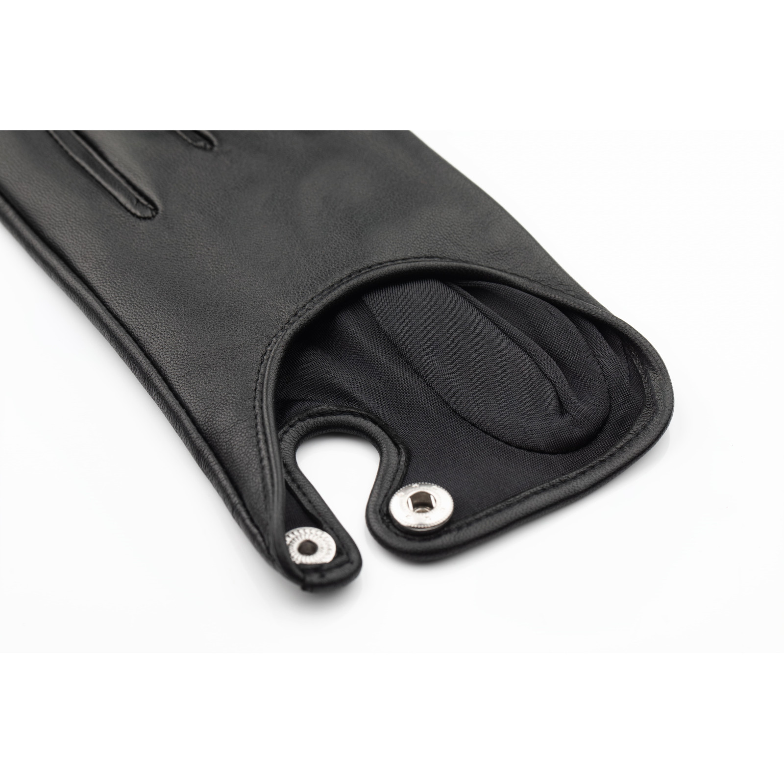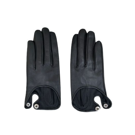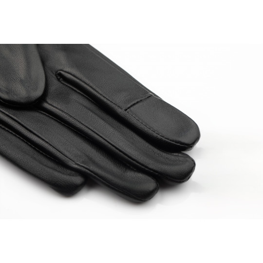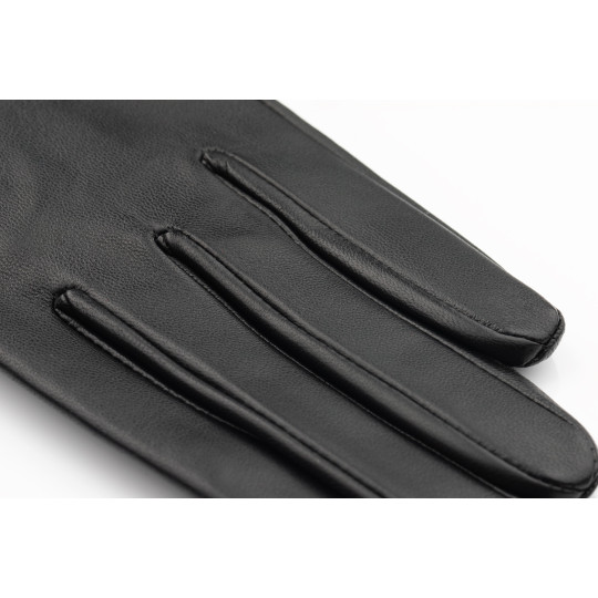 Women's gloves in 100% lambskin. Snap Closure, Tactile leather patches on the thumb and index fingers. 100% silk lined.