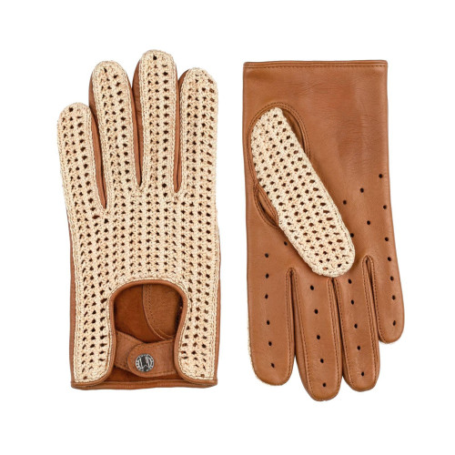 Gants de ville homme en 50% cuir d'agneau et 50% crochet coton, non doublés.