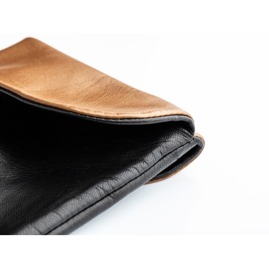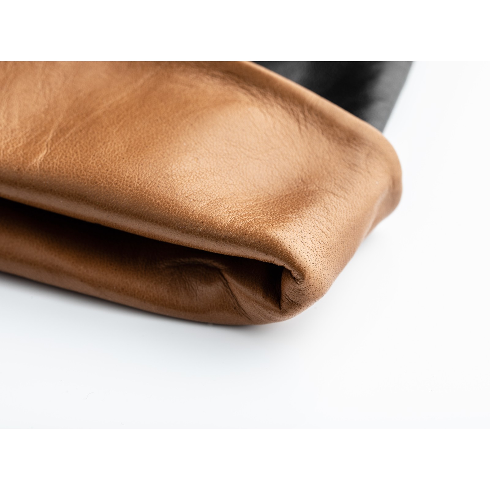 Gants femme en cuir d'agneau avec le revers contrasté, piqué anglais, doublé soie, pouce et index tactiles.