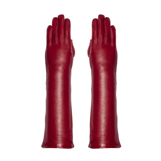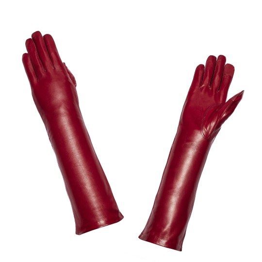 Gants femme en cuir d'agneau mi long, piqué anglais, doublé soie, pouce et index tactiles.
