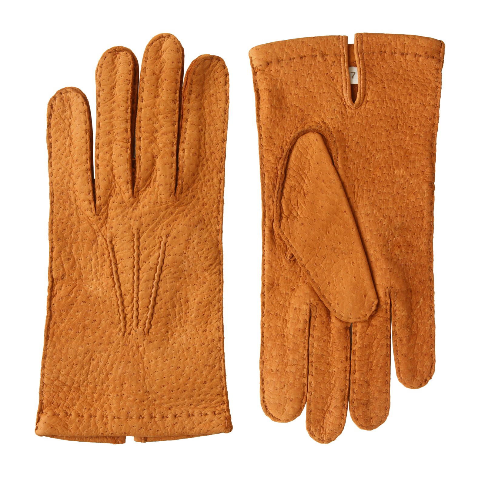 Gants femme, en cuir de pécari, cousu main, non doublé.