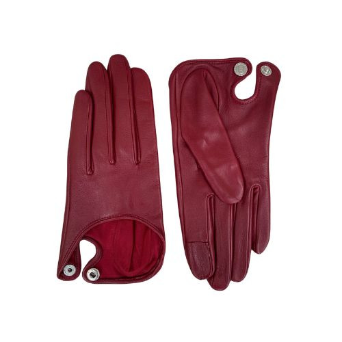 Gants en cuir d'agneau avec bouton pression Maison Fabre, doublé cupro, pouces et index tactiles.