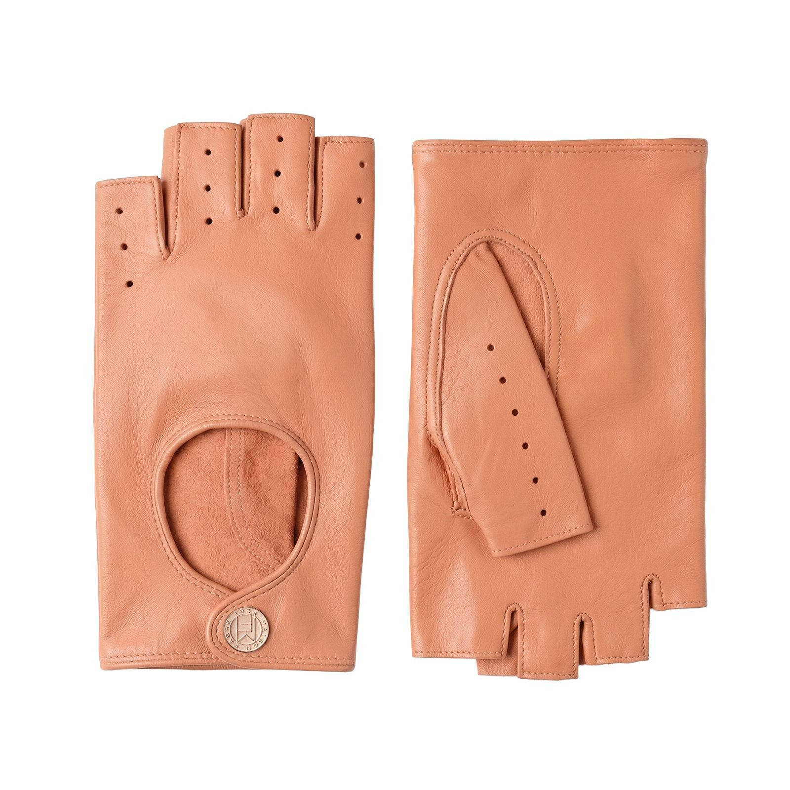 Mitaines en cuir d'agneau, en piqué anglais, bouton pression Maison Fabre, non doublés.