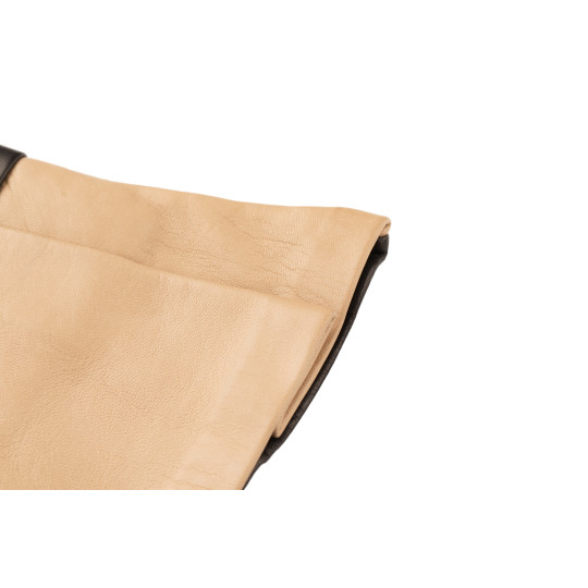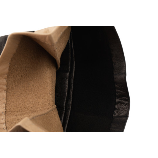 Gants femme en cuir d'agneau en piqué anglais, avec soufflet, doublures soie et pouces et index tactiles.