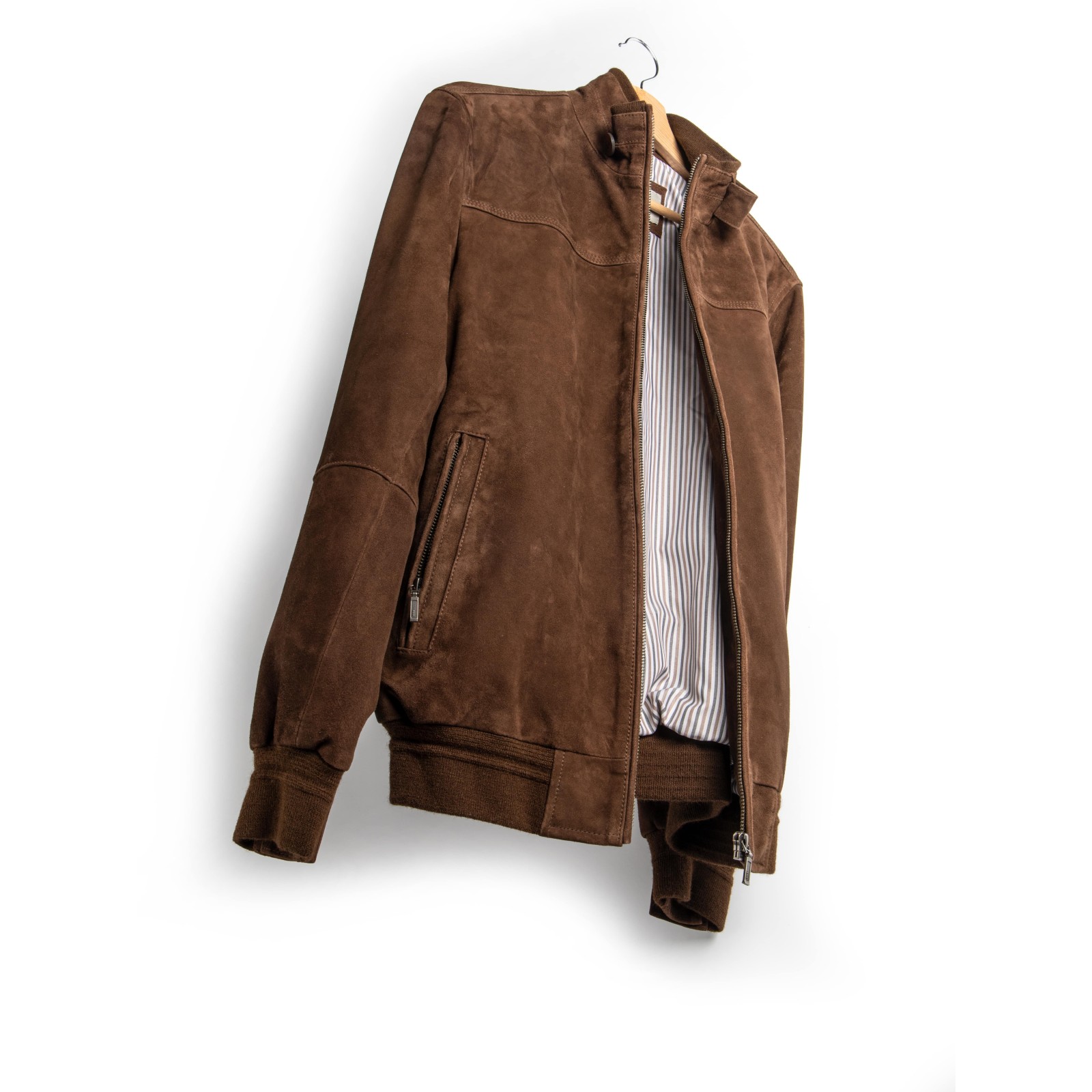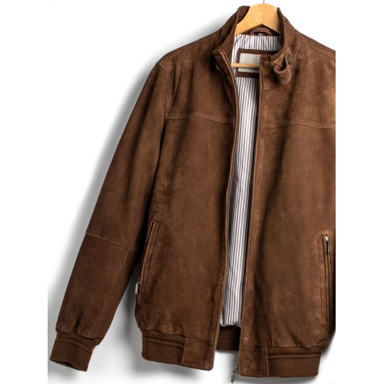 Fermeture : à glissière métal, col bord-cote intérieur, extérieur recouvert de cuir d'agneau velours